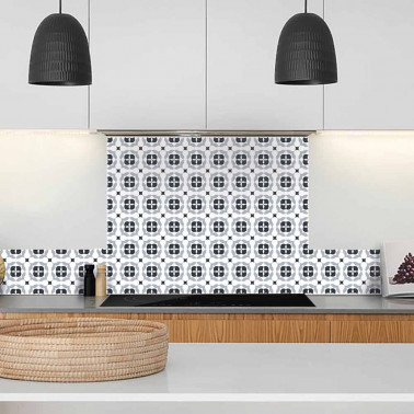 Le fond de hotte Carreaux de Ciment Blanc Flora détermine l'ambiance de votre cuisine car c'est un élément à part entière de la décoration de la pièce. Vous pouvez amplifier l'esprit Carreaux de Ciment en rajoutant un ou plusieurs bandeaux qui viendront renforcer la singularité du motif choisi.