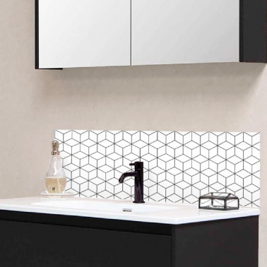 La crédence Graphique Noir Alice dynamise et donne plus de caractère à votre salle de bain, grâce à son design très contemporain voire futuriste !